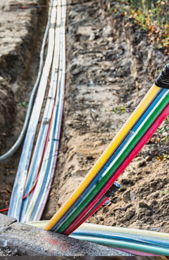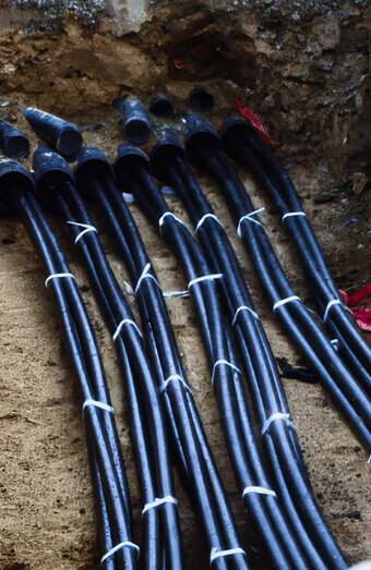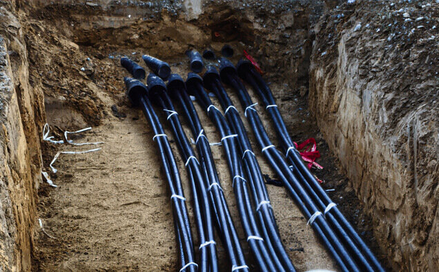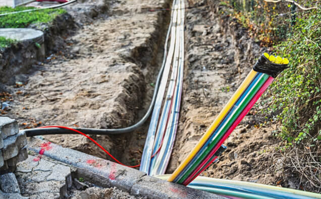 Complete installation of underground service cables from the nearest pillar or pit to new properties, including trenching, conduit installation, and terminations to network standards.