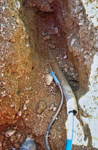 Compliant trenching services and installation of electrical-grade conduit for mains cabling, complete with proper backfill, warning tape, and compaction as required.